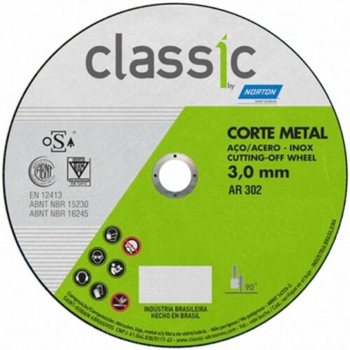 Seja Bem Vindo a DD Máquinas!Discos de corte para diversos usos com maior rendimento, precisão e qualidade na aplicação. O Disco de Corte Norton AR 302 Classic para Metal é indicado para cortes e desbastes em geral e manutenções industriais leves, por ser um disco de alta resistência e excelente custo benefício.Características:Peso (kg): 0,253.Uso Indicado: Para operações de corte, desbaste e acabamento em aço carbono e aço inox.Dimensão do Produto (CxLxA): 230x3.0x22.23 mm.Tipo de Disco: Corte.Tipo de Embalagem: Avulso.Reforço: 2 telas.*Imagens Meramente Ilustrativas.Todas as Informações divulgadas são de responsabilidade do Fabricante/Fornecedor.Tome cuidado ao manusear e utilizar o aparelho.