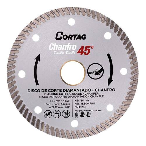 Disco Corte Diamantado Para Chanfro 45º 115mm Turbo Cortag Disco Diamantado Turbo Chanfro 45º 115 mm