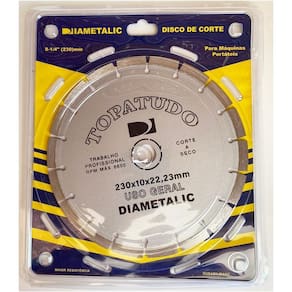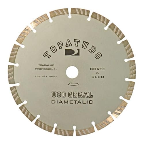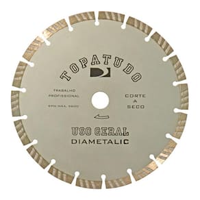 Um disco de corte diamantado segmentado topa tudo é uma ferramenta utilizada para corte em diversas superfícies, como: metal, concreto, pedra e outros materiais duros. Sua característica distintiva é a presença de segmentos espaçados ao redor da borda externa do disco. A disposição segmentada permite uma maior eficiência de corte, pois reduz a geração de calor e aumenta a remoção de material.