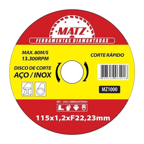 O Disco de Corte Rápido para Aço Inox é a ferramenta ideal para cortes precisos, rápidos e seguros em superfícies de aço inoxidável. Fabricado com materiais abrasivos de alta performance, este disco oferece resistência ao desgaste e um acabamento limpo, sem rebarbas. Com sua composição especialmente projetada, ele reduz a geração de calor e faíscas durante o corte, preservando a integridade do material e prolongando a vida útil da ferramenta. É compatível com esmerilhadeiras e indicado para aplicações profissionais e domésticas. Escolha o Disco de Corte Rápido para resultados superiores em seus projetos com aço inox. Ean: 7898659064916