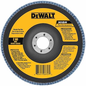 Disco de aba 60G tipo 27 DEWALT DW8352 de 4-1/2 polegadas por 7/8 polegadas - O grão de zircônia permite uma remoção de material 3X mais rápida do que os discos de lixar de metal com resina de fibra - O tecido abrasivo premium oferece uma vida útil até 15 vezes maior do que os discos de lixar de metal com resina de fibra de vidro - O suporte de fibra de vidro tipo 27 fornece um ângulo de moagem de 5 a 15 graus
