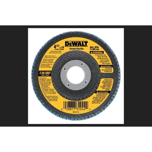 DeWALT dwa8207 60 Grit zircônia t29 aba, 4 – 1/2 pol. x 7/de da DeWALT - Zirconia grit enables 3X faster material removal than fiber resin metal sanding discs - Premium abrasive cloth provides up to 15 X longer life than fiber resin metal sanding discs - Type 29 fiberglass backing provides grinding angle of 20-25 degrees