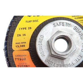Disco de aba Forney 71933, zircônia azul tipo 29 com mandril rosqueado de 5/8 polegadas-11, grão 120, 4-1/2 polegadas
