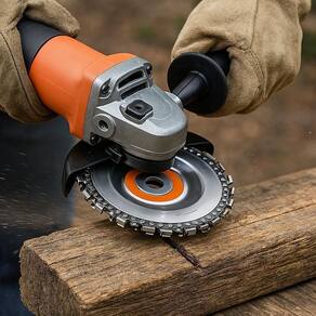 Descubra a precisão e a eficiência com nosso Disco Moedor de Corrente. Projetado para marceneiros que valorizam acabamentos finos e suaves, este disco é uma ferramenta essencial para esculpir, cortar e moldar madeira com facilidade. Especificações: 22 Dentes Afiados: Lâminas de serra circular finamente dentadas para um acabamento impecável Superfície Acabada: Minimiza a necessidade de lixamento após o uso, economizando tempo e esforçoDimensões Otimizadas: Espessura da Roda: 0,5cm, permitindo afiação com lima de motosserra ou substituição fácil Tamanho Ideal: Encaixe de 58 16mm e diâmetro de 4 polegadas, compatível com esmerilhadeiras angulares padrão Função Versátil: Aço de Alta Qualidade: Resistente e durável, opera a uma velocidade máxima de 13000 rpm Remoção Eficaz: Excelente para trabalhar superfícies curvas e remover resíduos rapidamente Amplas Aplicações: Design Antifolga: Fácil de usar e instalar, proporcionando segurança e controle Não Metálicos: Ideal para trabalhar com madeira, plástico, gelo e borracha dura Material Premium: Aço de Alta Performance: Garante durabilidade e resistência ao desgaste 22 Dentes de Corte Fino: Oferece uma superfície lisa que requer pouco lixamento posteriorCom nosso disco moedor de corrente, você terá a ferramenta perfeita para levar seus projetos de marcenaria ao próximo nível.