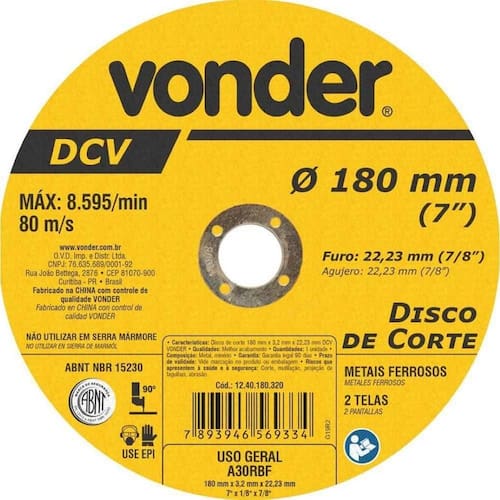 Disco de corte 180 mm x 3,2 mm x 22,23 mm DCV VONDER