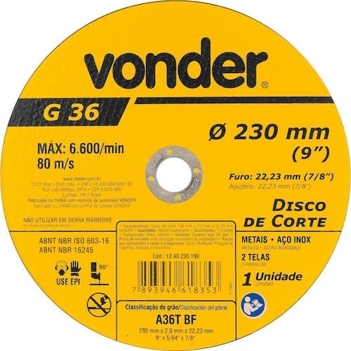 Diâmetro do furo do disco de corte: 22,23 mm - 7/8