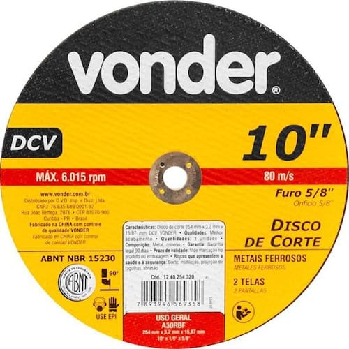 Disco de corte 254 mm x 3,2 mm x 15,87 mm DCV VONDER