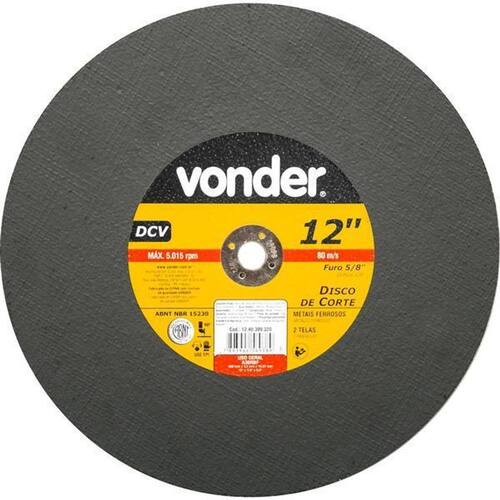 Conteúdo da Embalagem:1 Disco de corteDescrição:Disco de corte 300 mm x 3,2 mm x 15,87 mm DCV VONDERAplicações e dicas de uso:Indicado para serralheiros e demais profissionais em geral. Ideal para cortar aços e materiais ferrosos barras, tubos e chapas , manutenções e reparos leves.Destaques e diferenciais:Possui excelente performance em trabalhos intermitentesCaracterísticas Técnicas:Diâmetro do disco de corte: 300 mm - 12 Espessura do disco de corte: 3,2 mm - 1/8 Diâmetro do furo do disco de corte: 15,87 mm - 5/8 Número de telas do disco: 2 Grão: G 30 Rotação máxima do disco rpm : 5.015 rpm Norma de referência: ABNT NBR 15230Garantia legal: 90 dias Marca: Não Informado Ean: 7893946569389
