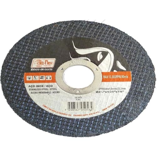 Disco de corte 115x1,0x22mm 4.1/2 x 1/25 x 7/8 Para Lixadeiras de Ø 4.1/2 Cortes de metal Pacote com 50 unidades Os Disco de Corte Dislfex são indicados para o corte de aço carbono e inox, com alto desempenho, baixa geração de calor e sem rebarbas. Os Discos tem como diferencial seu alto desempenho com baixo custo. Use os discos conforme norma ABNT 15230. Sempre verifique rotação de trabalho e posição de uso conforme indicação no rótulo do produto. Sempre use equipamento de proteção individual. Ean: 7898547051653