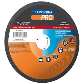 Utilizado no corte de aços e metais ferrosos em geral, a linha de discos de corte da Tramontina PRO é produzida e testada para garantir segurança e resistência. A ferramenta certa para você que trabalha em manutenções industriais. Orientações Disco produzido em óxido de alumínio.Corpo reforçado com 2 malhas de fibra de vidro.Anel interno de aço especial.Velocidade máxima de trabalho 80m/s - 13300 rpm.Modelo tipo 41 - A60T-BFEN12413ABNT NBR 15230Utilizado juntamente com esmerilhadeiras nos trabalhos de corte em aços e metais ferrosos em geral.Proporciona um excelente rendimento nas operações de corte.Todas as ferramentas são produzidas e testadas conforme normas específicas. Observações Use óculos, luvas de segurança, protetor auricular, máscara de proteção contra poeira e vestimentas adequadas de acordo com a tarefa a ser executada.Sempre manuseie e armazene os discos com cuidado.Antes da utilização, faça uma avaliação visual certificando-se que não haja danos ou trincas nos discos.Certifique-se que a velocidade do equipamento não exceda a velocidade máxima marcada nos discos.Utilize flanges de tamanho igual e modelo apropriado para cada tipo de disco.Sempre utilize o protetor de segurança do equipamento.Sempre que utilizar discos novos, antes da operação trabalhe com a máxima rotação, sem carga, por um minuto em área protegida. Tal procedimento tem o objetivo de verificar a integridade dos discos.Utilize apoio para os braços, se necessário.O ambiente de trabalho deve ser ventilado para evitar doenças respiratórias.Não utilize discos que foram expostos a umidade e temperaturas extremas.Não utilize discos que sofreram quedas ou que apresentem danos.No momento da montagem, não force os discos contra o equipamento ou altere o tamanho do furo central.Não aperte as flanges excessivamente.Não fique diretamente em frente aos discos durante a operação.Não utilize os discos para outros fins a não ser para os que foram projetados.Armazene em local limpo e seco. Características Gerais EAN13 7891114157819 DUN14 17891114157816 NCM 6804.22.11 Peso Líquido 0,0300 kg. Peso Bruto 0,0300 kg. Metragem 0,000013 m³. Dimensões Embalagem (Compr. X Larg. X Alt.) 115x 115x 1 mm. Dimensões Produto (Compr. X Larg. X Alt.) 115x 115x 1 mm. Dimensão Extra A 1,0 mm. Dimensão Extra B 115,0 mm. Dimensão Extra C 22,2 mm.