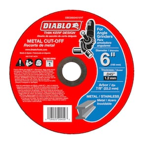 Enhance your metal cutting projects with the Diablo 6" Metal Cut-Off Disc. This disc delivers exceptional performance and productivity for medium-duty tasks, featuring a premium aluminum oxide blend that cuts through material faster and offers an extended cutting life. The thin kerf design ensures a fast, precise cut with minimal burr formation, allowing your power tool to work at its full potential with reduced resistance. Fully reinforced for use in hand-held cut-off work, this disc is ideal for working in hard-to-reach areas, such as cutting angle iron, metal slotting, cutting steel studs, and fabricating sheet metal. Optimized for use with 6" angle grinders, this disc supports a maximum RPM of 10,150. Each pack contains one 6" cut-off disc with a 7/8" arbor, making it the perfect choice for medium-duty cutting applications.