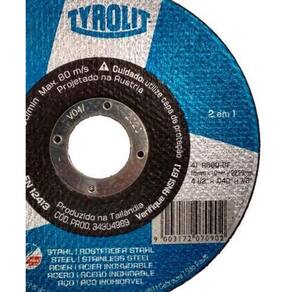 Disco de Corte Deep Cut 4.1/2 x 1.0 x 7/8 Basic 2in1 - 34304989 - TYROLIT Disco com boa capacidade de corte e de remoção de material, boa durabilidade e vida útil, além de bons resultados de trabalho. Código de Fábrica: 34304989 . --------------------- BIG BOOST ------------------------ Disco De Corte 2 Em 1 Basic 115 X 1,0 X 22,23Mm -Tyrolit-34304989 Disco de corte Basic 2 em 1 é indicado para uso em esmerilhadeiras angulares, para trabalhos de corte ou desbaste em ligas de aço carbono e aço inoxidável, com um único disco. Produzido com pureza química que proporciona maior resistência à corrosão, fadiga. Possui desempenho otimizado de remoção de material corte livre e maior vida útil. - Atende exigências rigorosas de segurança para grande variedade de esmerilhadeiras angulares - Duas aplicações com um disco carbono e inox - Desempenho otimizado de remoção de material e vida útil - Pureza química evita os efeitos negativos no material da peça de trabalho corrosão, furos de corrosão, redução da resistência à fadiga - Especificações Técnicas: :: Velocidade máxima permitida: 80m/s :: Livre dos contaminantes Fe, S, Cl 0,1% :: Medidas: 115 x 1,0 x 22,23mm :: Rpm máximo: 13. 300rpm - : 3 anos - Marca: Tyrolit Marca: Não Informado