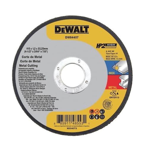 Disco De Corte Dewalt Hp2 Dw84407 115x1,0x22mm Aço/inox, Preciso E Profissional Disco de Corte Dewalt HP2 DW84407 115x1,0x22mm - Aço/Inox, Preciso e Profissional O Disco de Corte Dewalt HP2 DW84407 115x1,0x22mm oferece cortes rápidos e precisos em metais, com grão de óxido de alumínio de alto desempenho. Fibra de vidro reforçada suporta aplicações extremas e composição livre de ferro, enxofre e cloro garante cortes limpos e seguros. Ideal para profissionais da construção, serralherias e hobbistas exigentes.