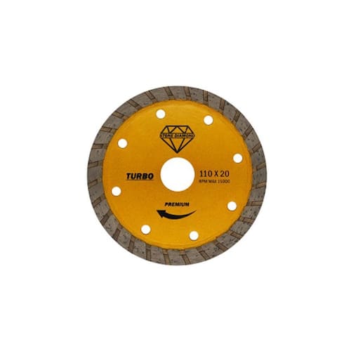 Disco TURBO OURO 110 milímetros é um disco com corte em alta precisão e excelente resistência ao desgaste abrasivo. O disco de corte para granito ou mármore é perfeito para operações de alta performance. O Disco Diamantado de Corte com diâmetro de 115 milímetros atende marmorarias na confecção de bancadas, tampos de pia, mesas, balcões e outros trabalhos em pedras semelhantes. O disco de corte diamantado com diâmetro de 110 milímetros atende marmorarias na confecção de cubas esculpidas, bancadas, tampos de pia, mesas, balcões e outros trabalhos com porcelanatos. O disco de corte diamantado turbo apresenta o acabamento e precisão dos discos contínuos com o processo de refrigeração dos discos segmentados. Ideal para operações sem água ou refrigeradas com acabamentos sem fissuras ou rebarbas. Disco Diamantado Turbo STONE DIAMOND 110mm TURBO OURO - Modo de uso: