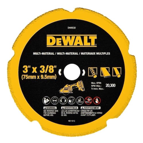 Disco De Corte Diamantado 3" x 3/8 Multimaterial DW8530 Dewalt. Disco ideal para uso com a máquina DCS438B da DEWALT. Aplicação para multimateriais e 3/8" de eixo.