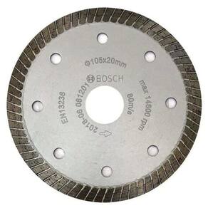 Combo com 5 Discos de Corte Diamantados 4.3/8 POL Fino para Porcelanato 105 MM Turbo BOSCH Acabamento fino e preciso com boa velocidade de corte, com efeito de resfriamento que evita aquecimento e danos no disco. Adequada para os principais revestimentos duro do mercado, como porcelanatos, placas de mármore e granito, com excelente vida útil também em aplicações secas. Com menos vibração e mais estabilidade do que a concorrência devido à espessura do corpo do disco 1,2 mm que garante menores deformações ao esquentar. Apropriado para os instaladores de piso, pedreiros, instaladores de mármore e granito e construção civil em geral. VANTAGENS: Design turbo fino Corte fino (1,2mm) Performance DADOS TÉCNICOS: Diâmetro do disco: 105mm Diâmetro do furo: 20mm Espessura mm: 1,2mm Código: 2608615177000 Marca: Bosch Quantidade na embalagem: 5 unidades