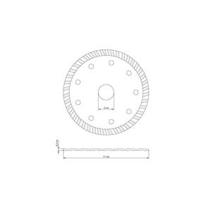 Corpo em aço liga especial; Têmpera total no corpo; Dureza diferenciada na área de corte; Velocidade máxima de trabalho 80m/s ? 15000 rpm; Com anel de redução; Tamanho: 4.3/8? Utilizados juntamente com serras mármores nos trabalhos de corte em concreto, rebocos, tijolos, refratários, basalto e outros materiais brutos que não necessitam alta precisão e qualidade no acabamento do corte. Proporcionam cortes com menor atrito, pois as gargantas entre os dentes eliminam o contato contínuo entre a banda de corte e o material, ajudando a refrigerar ambos. Pode ser utilizado para corte a seco sem risco de superaquecimento. Porém, sempre que possível, utilize refrigeração para elevar o rendimento do corte e a vida útil do disco. Devido a largura da linha de corte ser maior que a dos discos de banda lisa, o corte pode apresentar vibração. - Todas as ferramentas são produzidas e testadas conforme normas específicas.