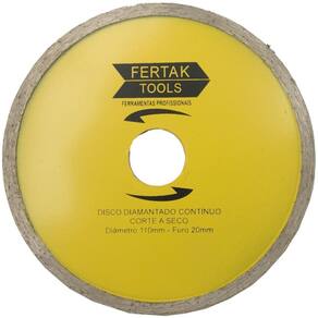 Diâmetro Externo: 110mm Furo Central: 20mm com anel de redução incluso Material: Superfície contínua com tecnologia diamantada Aplicação: Azulejos, porcelanato, mármore, cerâmica esmaltada, refratário duro, telhas e tijolos cerâmicos.