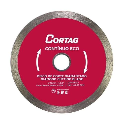 Disco De Corte Diamantado Cortag 110mm Contínuo Eco Referência: 61548Tipo: ContínuoMedidas: 110mm ( 20mm (13/16)Acompanha Bucha de Redução: SimRPM: 14000 A imagem do produto é ilustrativa e pode variar de tonalidade e cor de acordo com a configuração de cada objetos que compõem a foto ambientada não acompanham o meramente ilustrativas.
