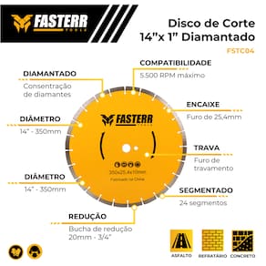 DISCO DIAMANTADO SEGM 350 X 25,4 MM FASTERR FSTC04
