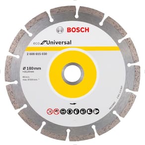 Código: 2 608 615 030. Diâmetro do disco: 180mm. Diâmetro do furo: 22,23mm. Largura de corte: 2,2mm. Altura do segmento: 7mm. Tipo de disco: segmentado. Quantidade de segmentos: 14. RPM Máximo: 8.500 RPM.