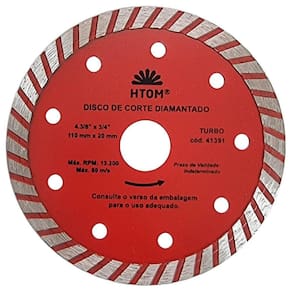 Disco de Corte Diamantado Turbo 110mm x 20mm Corte Seco para Serra Mármore Profissional HTOM