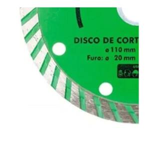 Disco De Corte Diamantado Turbo Eco 110x20mm 4.3/8'' Cortag O disco de corte diamantado turbo Cortag é uma ferramenta abrasiva utilizada para cortar materiais duros, como mármores, granitos, pedras decorativas e alvenaria. Sua característica 'turbo' refere-se ao design especial da borda, que possui segmentos alternados inclinados e serrilhados. Essa configuração ajuda a acelerar o processo de corte, proporcionando maior eficiência e rapidez. A característica distintiva desse tipo de disco é a presença de segmentos de diamante na sua borda, que são responsáveis por realizar o corte Ean: 7897451465983