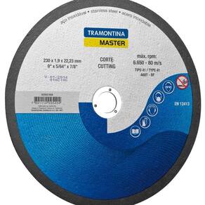 Disco produzido em óxido de alumínio;Corpo reforçado com 2 malhas de fibra de vidro;Anel interno de aço especial;Velocidade máxima de trabalho 80m/s - 6.600 rpm;Modelo tipo 41 - A60T-BFEN12413ABNT NBR 15230Utilizado juntamente com esmerilhadeiras nos trabalhos de corte em inoxidáveis;Proporciona um excelente rendimento nas operações de corte, devido a sua espessura mais fina que os discos de corte normais;Todas as ferramentas são produzidas e testadas conforme normas específicas.