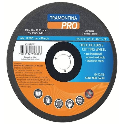 Disco De Corte Fino Para Aço Inox E Materiais Endurecidos 10" Tramontina Pro Tramontina Disco de Corte Fino para Aço Inox e Materiais Endurecidos 10 Tramontina PRO Tramontina - Utilizado no corte de aço inox, a linha de discos de corte fino da Tramontina PRO é produzida e testada para garantir segurança e resistência. A ferramenta certa para você que trabalha em manutenções industriais. Características Gerais do Produto: Garantia: - Garantia total contra vícios ou defeitos de fabricação.