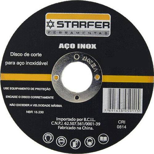 Disco de corte inox STARFER possui alta performance e é utilizada em cortes de metais nobres, como aço inox. Disco de Corte para aço inox. Dimensoes: Diametro do Disco 180MM x Diametro do Furo 22.2MM X Espessura do Disco 1.6MM. Indicado para cortar Barras,Tubos, Chapas Metalicas em Aço Carbono e Aço Inox. Embalagem com 5 Discos.