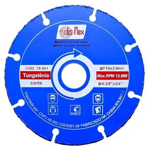 Disco De Corte Para Madeira Tungstênio 110X20Mm 78.001 Disflex Produto: Disco de corte para madeira em tungstênio 110 x 20 mm - 78.001 Marca: Disflex Descrição: O Disco de Corte para Madeira em Tungstênio 110 x 20 mm da Disflex. Este disco de corte é especialmente projetado para oferecer precisão e durabilidade inigualáveis em uma variedade de materiais. Perfeito para cortar madeira, gesso, piso laminado, pregos e até alumínio, este disco versátil é uma ferramenta indispensável para diversos perfis de usuário. Seu material em tungstênio garante cortes mais rápidos e limpos, proporcionando um acabamento superior sem desgastar a ferramenta. Características: • Diâmetro de 110 mm e furo de 20 mm: Dimensões ideais para manuseio e compatibilidade com diversas máquinas. • Tungstênio de alta qualidade: Material robusto que proporciona cortes eficientes e vida útil prolongada do disco. • Uso múltiplo: Adequado para trabalhar com uma ampla gama de materiais, tornando-o extremamente versátil. • Fácil de instalar: Projeto simplificado facilita a troca e instalação do disco, economizando tempo e melhorando a eficácia do trabalho. O Disco de Corte da Disflex não é apenas uma ferramenta, mas um investimento na qualidade e eficiência dos seus trabalhos. Não importa se você está cortando uma peça resistente de alumínio ou dando forma a um delicado projeto em madeira, este disco foi feito para enfrentar desafios e superar expectativas. Adquira agora o seu Disco de Corte em Tungstênio da Disflex e transforme a maneira como trabalha com materiais diversos.Especificações: Tipo de disco: CorteMedidas: 110 x 22 mmAplicação: Madeira, gesso, piso laminado, pregos e alumínio. Marca: Não Informado