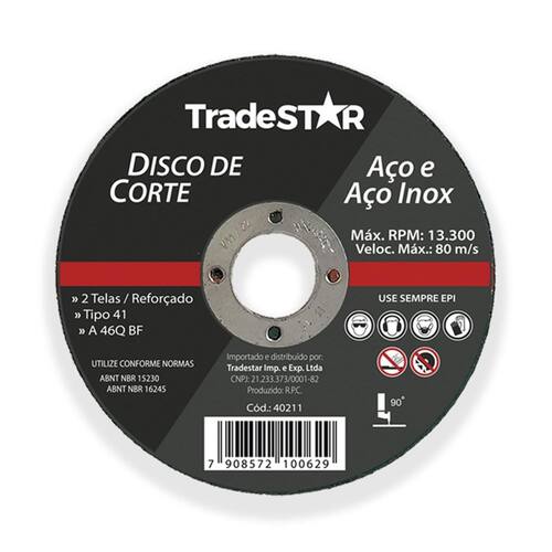 As especificações do disco de corte metal 4.1/2 115x1,0 mm incluem: