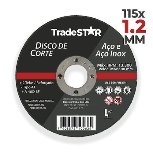 As especificações do disco de corte metal 4.1/2 115x1,2 mm incluem: