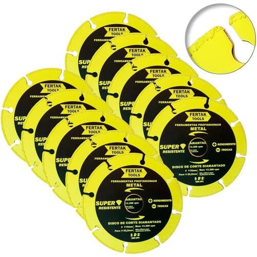 Disco De Corte Para Metal Diamantado Segmentado 115X22Mm 10 Un O Disco de Corte Para Metal Diamantado Segmentado 115x22mm é a solução ideal para cortes precisos e duráveis em metais diversos. Desenvolvido para oferecer máxima eficiência e resistência, garante resultados superiores em trabalhos profissionais e industriais.