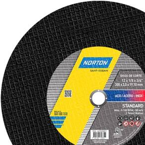 Disco De Corte Para Metal Inox 12Polx3/4Polx3Mm Standard Norton Produto: Disco de corte para metal e inox 12" x 3/4" x 3 mm - Standard Marca: Norton Descrição: O Disco de corte para metal e inox 12" x 3/4" x 3 mm Standard da Norton é a escolha perfeita para que buscam eficiência e precisão em cortes de materiais resistentes. Projetado especificamente para trabalhar com aço carbono e aço inox, este disco de corte destaca-se no mercado por sua durabilidade e performance superior. Ideal para diversas aplicações, o disco de corte Norton foi fabricado com materiais de alta qualidade e tecnologia de ponta, garantindo cortes rápidos e limpos, o que aumenta significativamente a produtividade em seu ambiente de trabalho. Além disso, conta com 2 telas de reforço que proporcionam maior segurança durante o uso. Características • Durabilidade prolongada: Materiais de alta qualidade que resistem a trabalhos intensos e prolongados. • Cortes precisos e rápidos: Ideal para aço inox e aço carbono, evitando rebarbas e desperdícios de material. • Segurança reforçada: Equipado com 2 telas de proteção que garantem maior integridade durante o corte. • Versatilidade: Perfeito para uso tanto em oficinas profissionais quanto em projetos de DIY Faça Você Mesmo . Adquira agora o seu Disco de Corte para Metal e Inox 12" x 3/4" x 3 mm Standard e eleve a qualidade dos seus projetos a um novo patamar.Especificações: Diâmetro: 12" 300 mm Diâmetro do furo: 3/4' 19,10 mm Espessura: 1/8" 3mm 2 telasRotação máxima: 5.100 / 80m/s. Marca: Não Informado Ean: 7891345816851