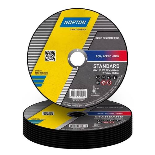 Características Adicionais: Indicado para profissionais da construção e serralherias nas operações rápidas, práticas e com segurança. Superfície: Aço Carbono e Aço Inox. Uso em máquinas estacionária policorte / sensitiva. Performance alinhada aos produtos da categoria de entrada.
