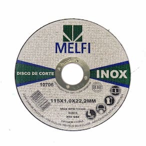 O Disco de corte para aço inox é utilizado juntamente com esmerilhadeiras nos trabalhos de corte em inoxidáveis. Marca: Melfi Características: -Velocidade: 13300 rpm / 80m/s -Diâmetro: 115mm. -Espessura: 1.0mm -Furo: 22.2mm. Conteúdo: -1 Disco de Corte Orientações Gerais: Usar capa de proteção. Use óculos. Proteja seus olhos. Não exceder rotação indicada. Aplicação: Ideal para proporcionar um excelente rendimento nas operações de corte, devido a sua espessura mais fina que os discos de cortes normais. Código: 10706