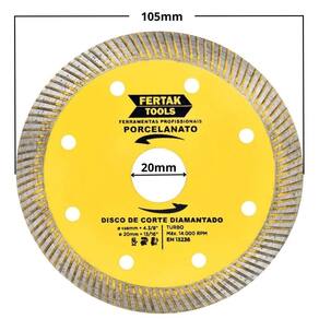 Cortes precisos e sem rebarbas no porcelanato O Disco de Corte para Porcelanato 105x20mm foi projetado para oferecer máxima precisão e acabamento impecável. Ideal para cortes retos e curvos, ele é a escolha perfeita para quem busca qualidade e eficiência em reformas, construções e projetos de revestimento.