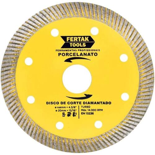 Cortes precisos e sem rebarbas no porcelanato O Disco de Corte para Porcelanato 105x20mm foi projetado para oferecer máxima precisão e acabamento impecável. Ideal para cortes retos e curvos, ele é a escolha perfeita para quem busca qualidade e eficiência em reformas, construções e projetos de revestimento.