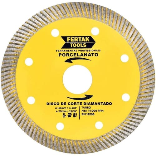Cortes precisos e sem rebarbas no porcelanato O Disco de Corte para Porcelanato 105x20mm foi projetado para oferecer máxima precisão e acabamento impecável. Ideal para cortes retos e curvos, ele é a escolha perfeita para quem busca qualidade e eficiência em reformas, construções e projetos de revestimento.