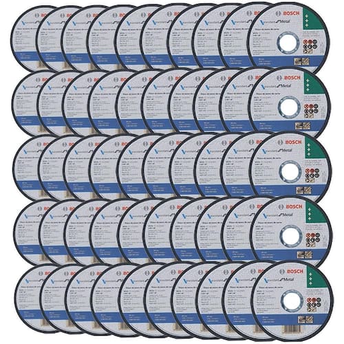O Disco de Corte Standart For Metal 115 x 1mm Reto Com 50 Unidades 2608619383 - Bosch, possuem ótimo desempenho em cortes em metal. São produzidos com grãos abrasivos de óxido de alumínio de alta qualidade que dão rendimento e velocidade em suas aplicações, além das telas de fibra de vidro feitas com precisão e simetria que trazem alta estabilidade para o disco. São fabricados sob alto padrão de qualidade em conformidade com as normas internacionais EN 12413 trazendo máxima segurança durante sua aplicação. São indicados para corte de metais ferrosos e não ferrosos e ferro fundido e utilização em esmerilhadeiras manuais.