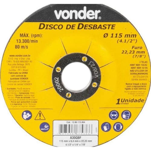 Disco De Desbaste 115 Mm X 6,4 Mm X 22,23 Mm - Vonder