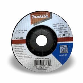 Disco De Desbaste 125x6.4x22mm Aço Makita D-19847 Disco de Desbaste 125X6.4X22mm Aço Makita D-19847 - Disco de Desbaste 125X6.4X22mm Aço Makita D-19847 Características Gerais do Produto: - Modelo: D-19847 - Marca: Makita - Furo: 22,23mm - Dimensões: 125X6.4X22mm - Diâmetro: 125mm - Ideal Para: Desbaste em aço. - Grão: A24R - Garantia direto com o Fabricante: 3 Meses Contra Defeitos de Fabricação Garantia: - 03 meses de garantia direto com o fabricante