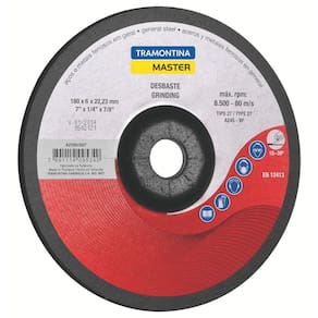 Cada linha de produtos da Tramontina é pensada para aprimorar o rendimento e performance de quem opta pela marca, é por isso que o Disco de Desbaste 7 polegadas Tramontina para Aços e Metais te auxilia em tudo. Fabricado para corte em metais ferrosos e aços, a ferramenta dispõe de um processo de corte preciso e suave, garantindo qualidade em cada operação. Orientações Disco produzido em óxido de alumínio;Corpo reforçado com 3 malhas de fibra de vidro;Velocidade máxima de trabalho 80m/s - 13300 rpm;Modelo tipo 27 - A24S-BFEN12413ABNT NBR 15230Utilizado juntamente com esmerilhadeiras nos trabalhos de desbaste em aços e metais ferrosos em geral.Proporciona um excelente rendimento nas operações de desbaste;Todas as ferramentas são produzidas e testadas conforme normas específicas. Características Gerais EAN13 7891114095340 DUN14 17891114095347 NCM 6804.22.11 Peso Líquido 0,3300 kg. Peso Bruto 0,3300 kg. Metragem 0,000194 m³. Dimensões Embalagem (Compr. X Larg. X Alt.) 180x 180x 6 mm. Dimensões Produto (Compr. X Larg. X Alt.) 180x 180x 6 mm. Dimensão Extra A 6,4 mm. Dimensão Extra B 180,0 mm. Dimensão Extra C 22,2 mm. Observações Use óculos, luvas de segurança, protetor auricular, máscara de proteção contra poeira e vestimentas adequadas de acordo com a tarefa a ser executada.Sempre manuseie e armazene os discos com cuidado.Antes da utilização, faça uma avaliação visual certificando-se que não haja danos ou trincas nos discos.Certifique-se que a velocidade do equipamento não exceda a velocidade máxima marcada nos discos.Utilize flanges de tamanho igual e modelo apropriado para cada tipo de disco.Sempre utilize o protetor de segurança do equipamento.Sempre que utilizar discos novos, antes da operação trabalhe com a máxima rotação, sem carga, por um minuto em área protegida. Tal procedimento tem o objetivo de verificar a integridade dos discos.Utilize apoio para os braços, se necessário.O ambiente de trabalho deve ser ventilado para evitar doenças respiratórias.Não utilize discos que foram expostos a umidade e temperaturas extremas.Não utilize discos que sofreram quedas ou que apresentem danos.No momento da montagem, não force os discos contra o equipamento ou altere o tamanho do furo central.Não aperte as flanges excessivamente.Não fique diretamente em frente aos discos durante a operação.Não utilize os discos para outros fins a não ser para os que foram projetados.Armazene em local limpo e seco.