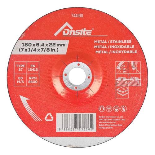 Disco De Desbaste Para Metal E Inox 7'' X 1/4'' X 7/8'' Onsite O Disco de Desbaste Par Metal e Inox 7'' x 1/4'' x 7/8'' 744190 - Onsite, é ideal para remoção de material e acabamento em metais. Aqui estão as principais vantagens desse modelo: Vantagens do Disco de Desbaste Onsite 7'' x 1/4'' x 7/8'' : Alta Remoção do Material: Projetado para desbaste eficiente, removendo rapidamente rebarbas, soldas e imperfeições em superfícies metálicas. Resistência e Durabilidade: Fabricado com abrasivos de alta qualidade, garantindo maior vida útil mesmo em usos intensivos. Menos Vibração e Maior Controle: Proporciona mais estabilidade no manuseio, permitindo desbastes mais uniformes e seguros. Versatilidade: Pode ser utilizado em diferentes tipos de metais, incluindo aço carbono e aço inoxidável, sendo ideal para diversas aplicações na metalúrgica, serralheria e manutenção industrial. Redução do Superaquecimento: Desenvolvido para minimizar o aquecimento durante o uso, preservando tanto a peça trabalhada quanto o disco. Compatível Com Lixadeiras Angulares: Pode ser em lixadeiras de 7'' 180mm , facilitando a adaptação a equipamentos comuns no mercado. RPM: 8.600 rotações por minuto. Se você precisa de um disco resistente e eficiente para desbastar metal e aço inox, o modelo 7'' x 1/4'' da Onsite é uma excelente escolha Código: 744190. Marca: Onsite. Tamanho: 7'' x 1/4 x 7/8 180mm x 6.4mm x 22.3mm - Furação para uso em ESMERILHADEIRA. Ean: 1000011015511. Marca: Não Informado Ean: 1000011015511
