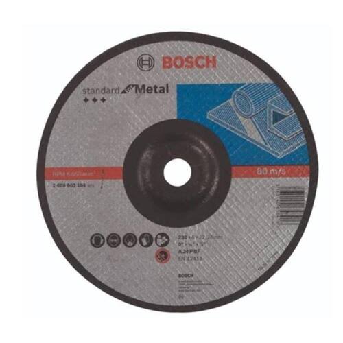 - Marca: Bosch; - Modelo: STANDARD; - Possui telas de fibras de vidro feitas com precisão e simetria, trazendo alta estabilidade para o disco; - Fabricado sob alto padrão de qualidade em conformidade com as normas internacionais EN 12413; - Traz máxima segurança durante as aplicações; - Usada em Esmerilhadeiras de 9''; - Tipo: Desbaste; - Tipo do Grão: xido de Alumínio; - Fórmula: A 24 R BF; - Centro: Deprimido; - Rotações por minuto (máx.): 6.650rpm; - Aplicação: Metais ferrosos e não ferrosos, ferro fundido; - Máquinas compatíveis: Esmerilhadeiras de 230mm (9''); - Segmento: Corte e Desbaste; - Acabamento/ Composição do Disco: xido de Alumínio, Resina Fenólica, Fibra de Vidro, Aço; - Certificado: EN12413; - Peso: 0,570 Kg; - Referência do Fornecedor: 2608603184.