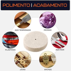 - Indicada para polimento de metais ferrosos ou não ferrosos, aço, aço inoxidável, alumínio, bronze, cobre, latão e plástico em geral