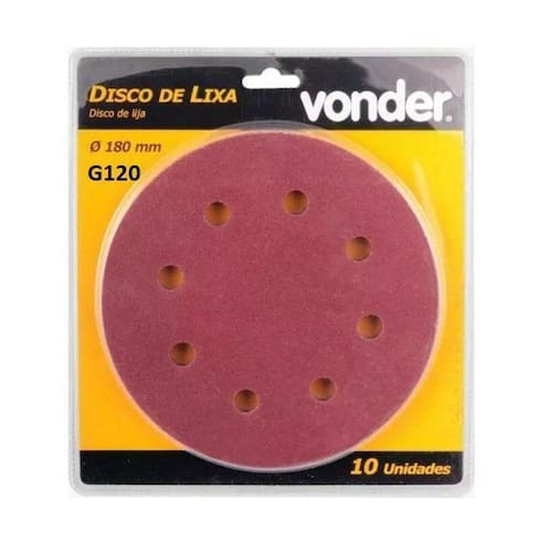 Disco de lixa 180mm grão 120 vonder para lixadeira de parede Propria para de lixadeira de mão 8 furos de 180mm