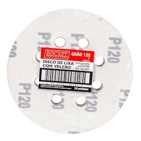 Disco De Lixa Com Tecido Adesivo 5'' Gr. 120 10Un 243,0023 - Rocast O Kit Disco de Lixa Com Tecido Adesivo 5'' GR. 120 Com 10 Unidades 243,0023 - Rocast, é projetado para lixar e dar acabamentos em superfícies variadas, tais como madeira, plástico, metais em geral e outros materiais. Ele é fabricado para ser acoplado em lixadeiras com sistema de fixação por Tecido Adesivo, facilitando a troca dos discos de lixa durante o trabalho.