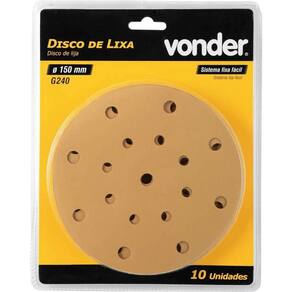 Aplicação: Ideal para lixamento de massa corrida. Indicado para a Lixadeira Roto-Orbital 6 LRV 350B VONDER PLUS e outras compatíveis com o diâmetro e furos da lixa.